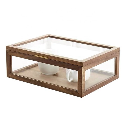 Cajas de embalaje de almacenamiento estilo cajón de madera de nogal hechas a mano, ventana rectangular de PVC transparente para aceites esenciales, crema facial, Perfume