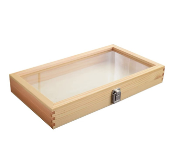 תיבת הזזה מרובעים מעץ מלא בעבודת יד עם חלון אקרילי למלאכות ומדבקות
